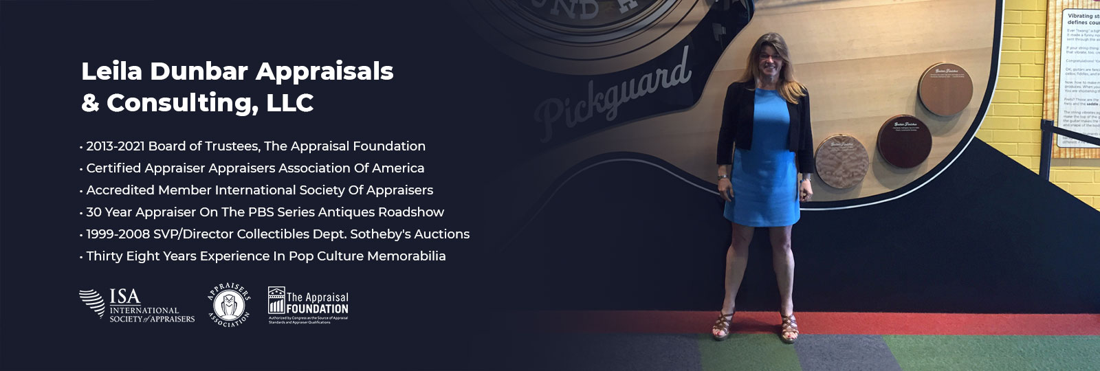 Leila is a member of the Appraisers Association of America (AAA), certified in sports memorabilia, entertainment memorabilia and wine appraising. She is also a member of the International Society of Appraisers (ISA). From 2013 – 2021 she served as a Board of Trustees member for the Appraisal Foundation, including Chair in 2020.